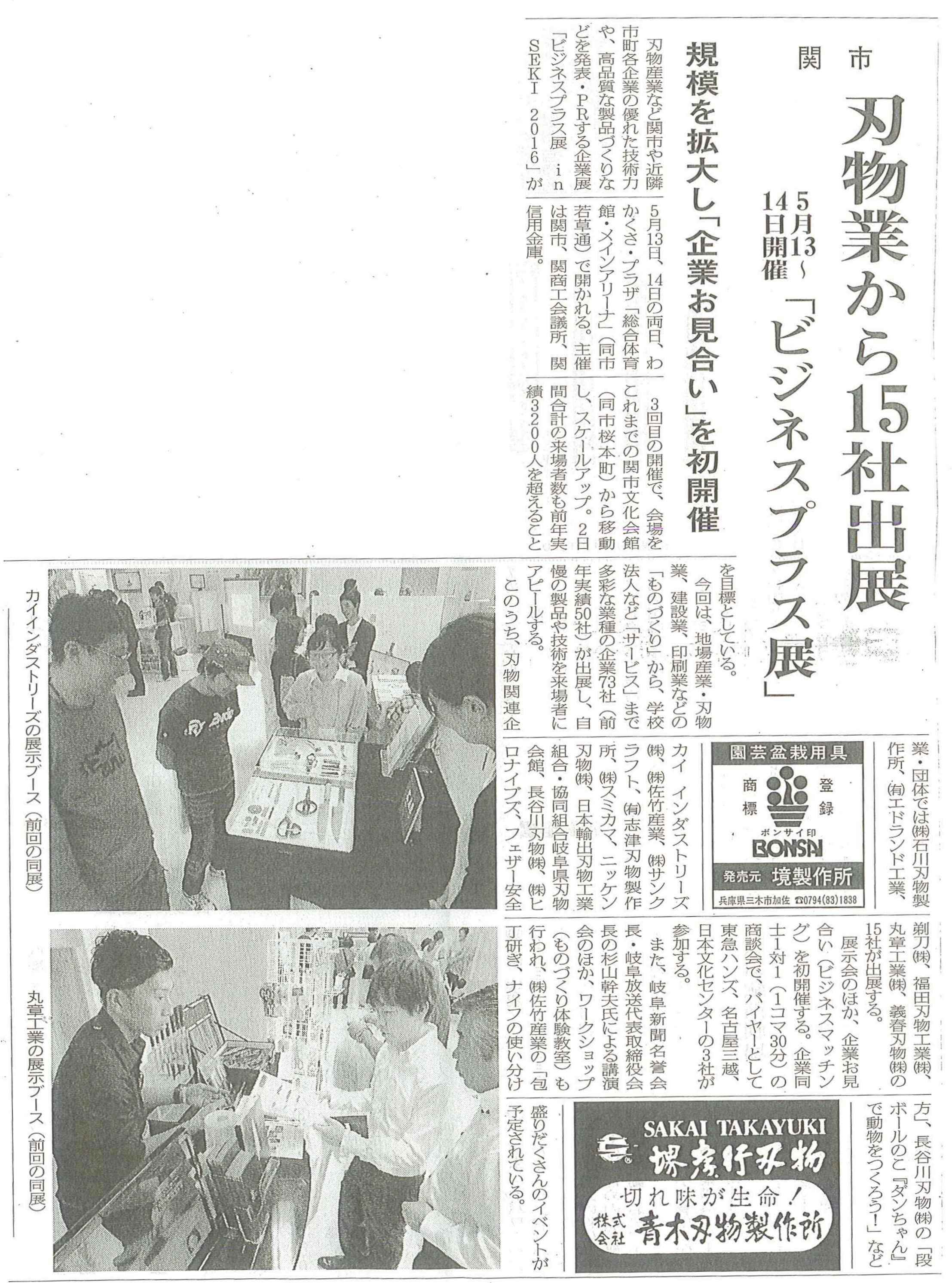 4月10日発行の日本刃物工具新聞にてビジネスプラス展の記事が掲載されています。