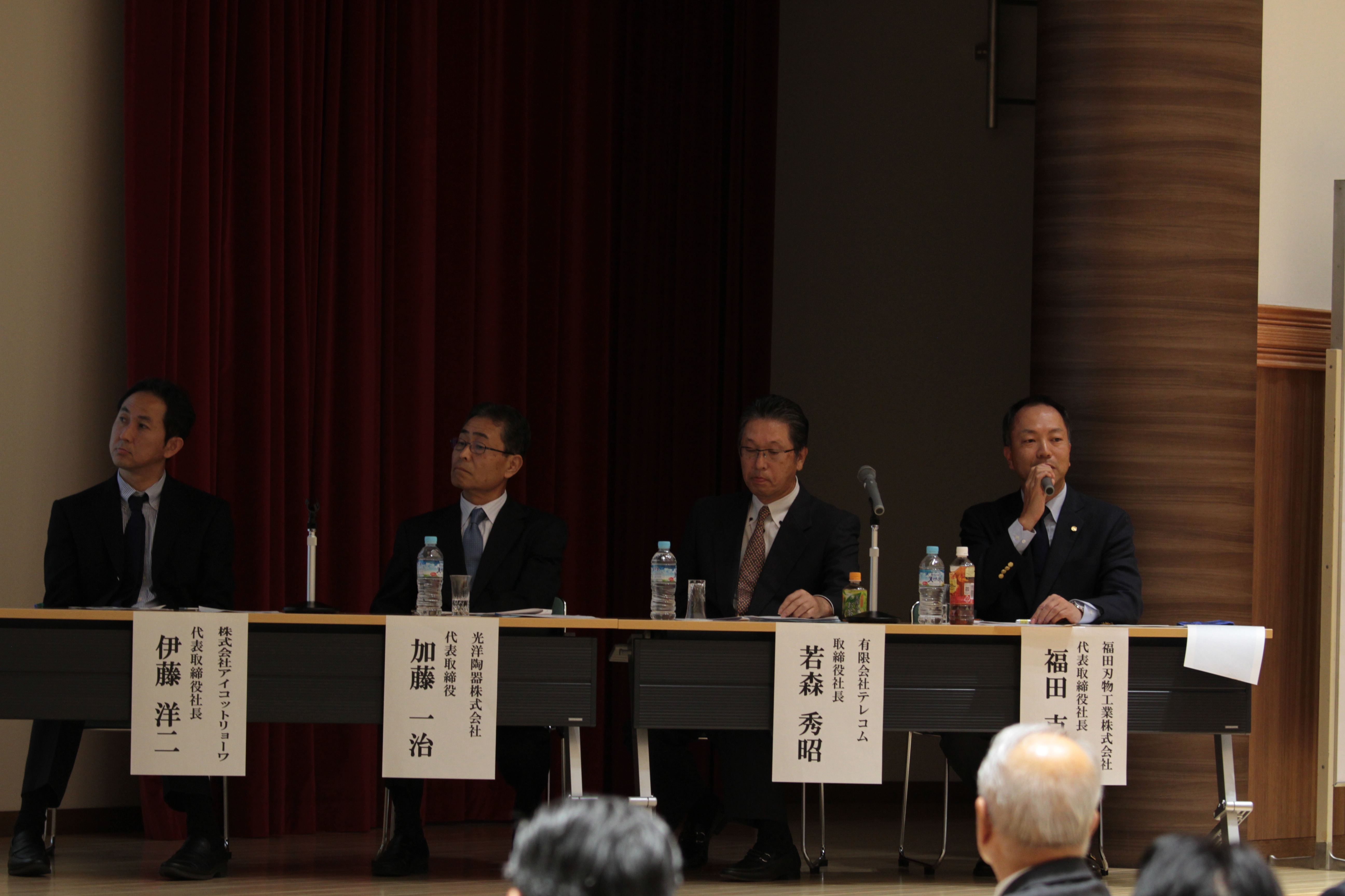 多治見商工会議所創立70周年記念によるセミナーが多治見市のとうしん学びの丘エールにて行われました。 「企業の生き残り策を考える! 今、中小企業に求められること」をタイトルとした内容で社長がパネリストとして参加しました。 4社の生産性向上の事例でQC活動、5S活動、改善提案、工場のIT化などの発表があり、生産性を上げる難しさや、業績向上と社員のやりがいにつながる話は、とても勉強になりました。明日からGWになりますが、しっかりリフレッシュして仕事に励んでいきたいと思います。