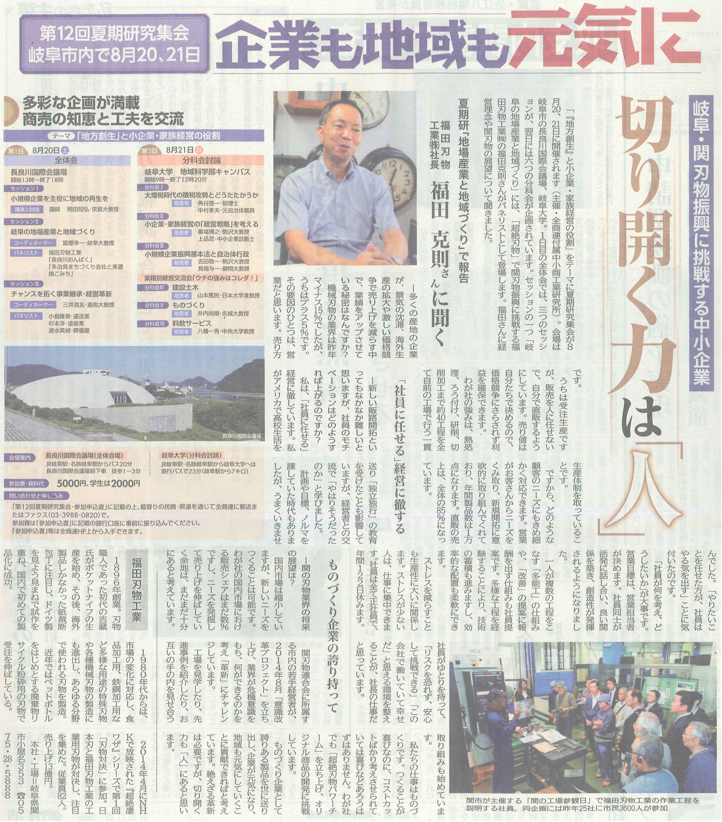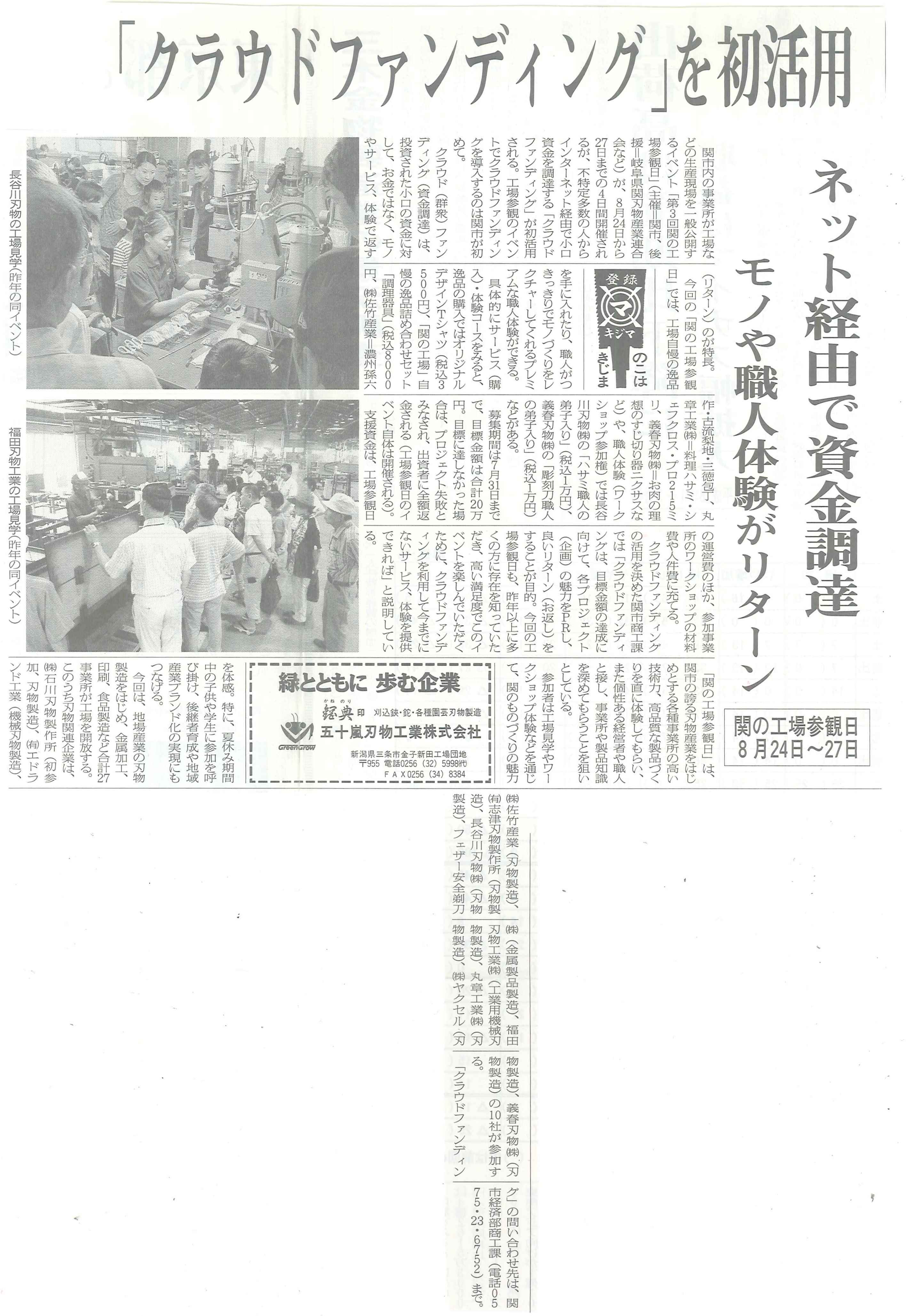 2016年6月30日の日本刃物工具新聞にて関の工場参観日の記事が掲載されました。