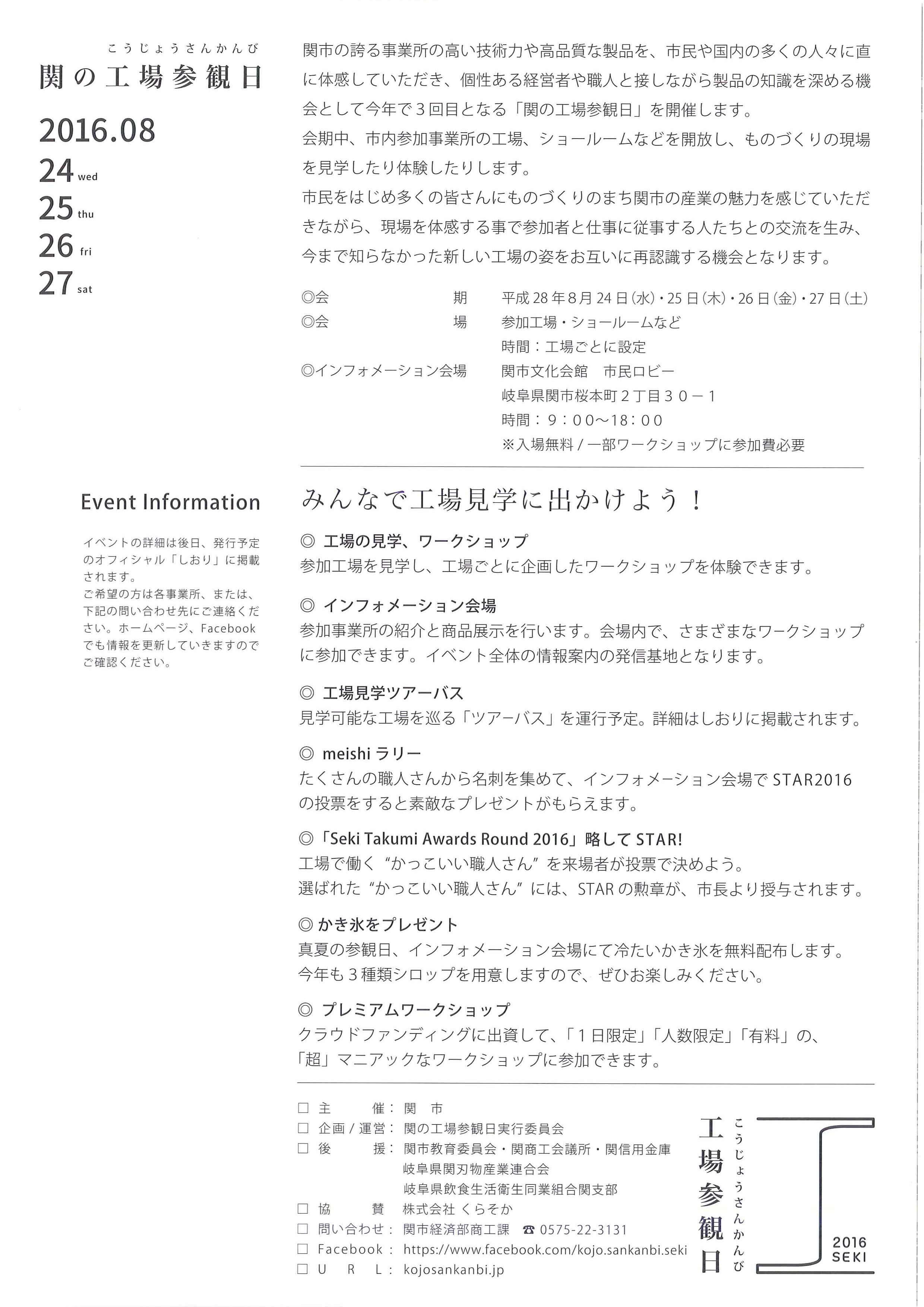 予約は関の工場参観日公式サイトより承っておりますので、皆様是非ご参加ください。