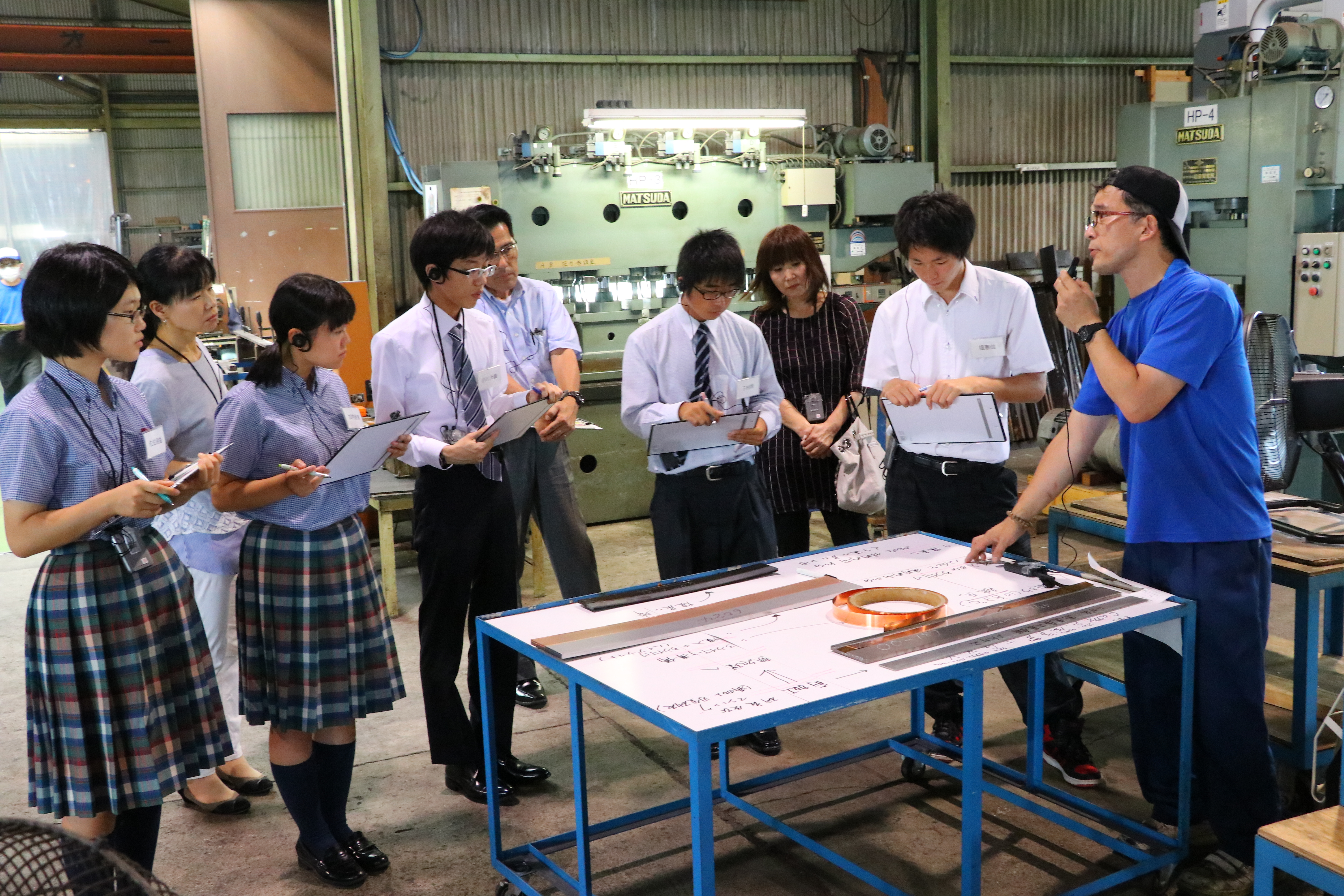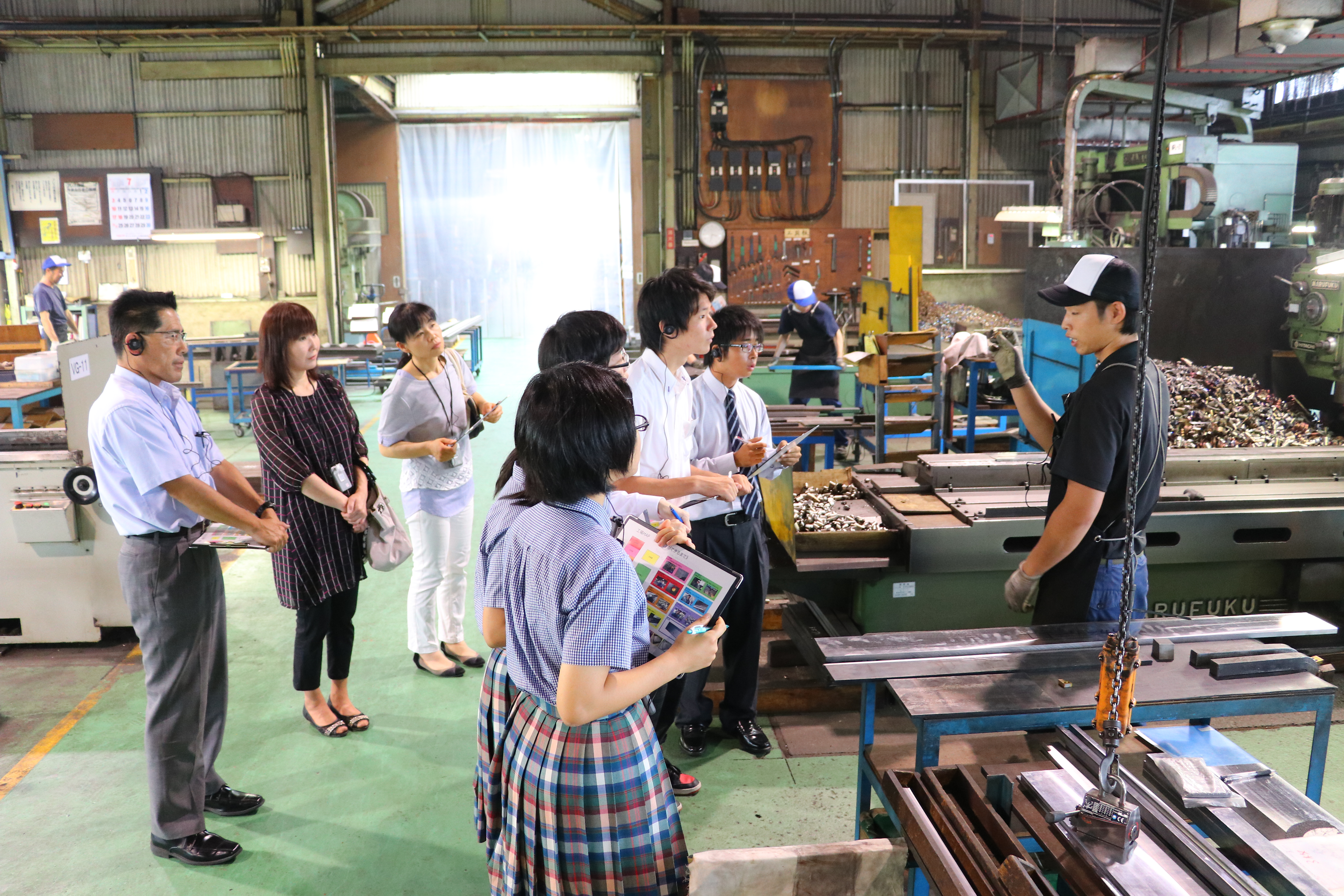 工場見学では、工程ごとに作業の様子を見てもらいました。