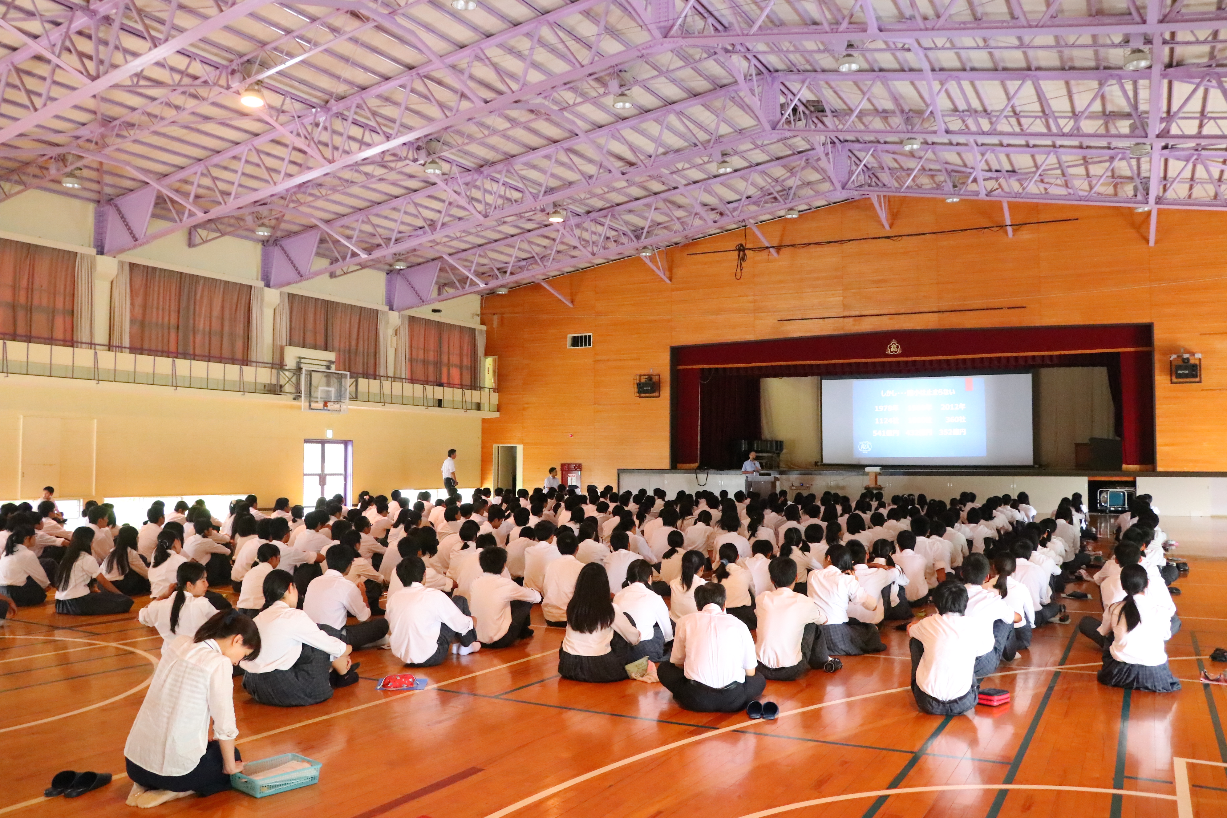 関高校1年生280名が集まり、関市の刃物産業の課題そしてFUKUDAは他社と何が違うのか、について講演しました。