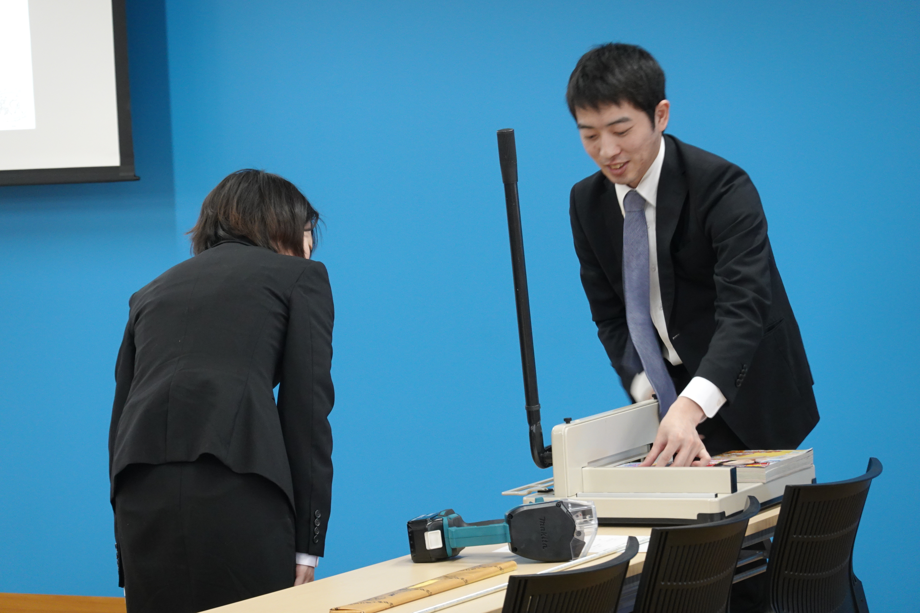 FUKUDAと言えば、紙幣を切る楽隊マーク®の「断裁包丁」が業界で有名でした。デジタル化、キャッシュレス化が進み、紙関係は衰退。現在はリサイクル、食品、プラスチック、医療、半導体業界など多分野に進出。年間1万種類(内30%は新規)の機械刃物を社内で一貫生産しています。